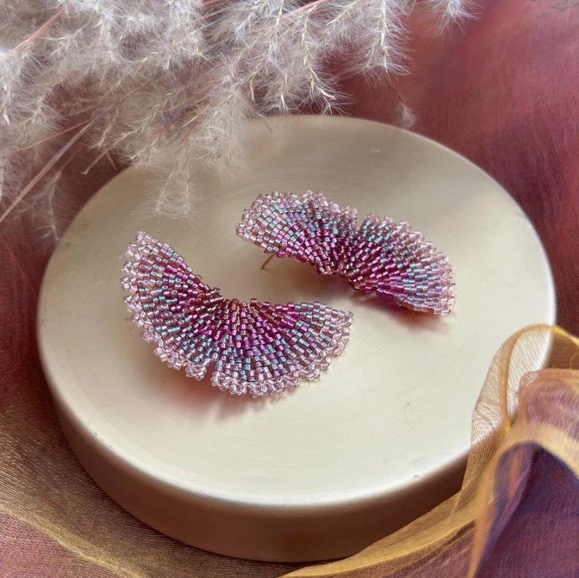 Add a touch of elegance with these Beaded Ginkgo Leaf Earrings in Violet. Handwoven with premium Japanese glass beads, they feature a stunning ombre effect that enhances the iconic ginkgo leaf design. The high-shine beads catch the light beautifully, making them perfect for formal occasions. Lightweight and comfortable, they're ideal for all-day wear without compromising on style.
