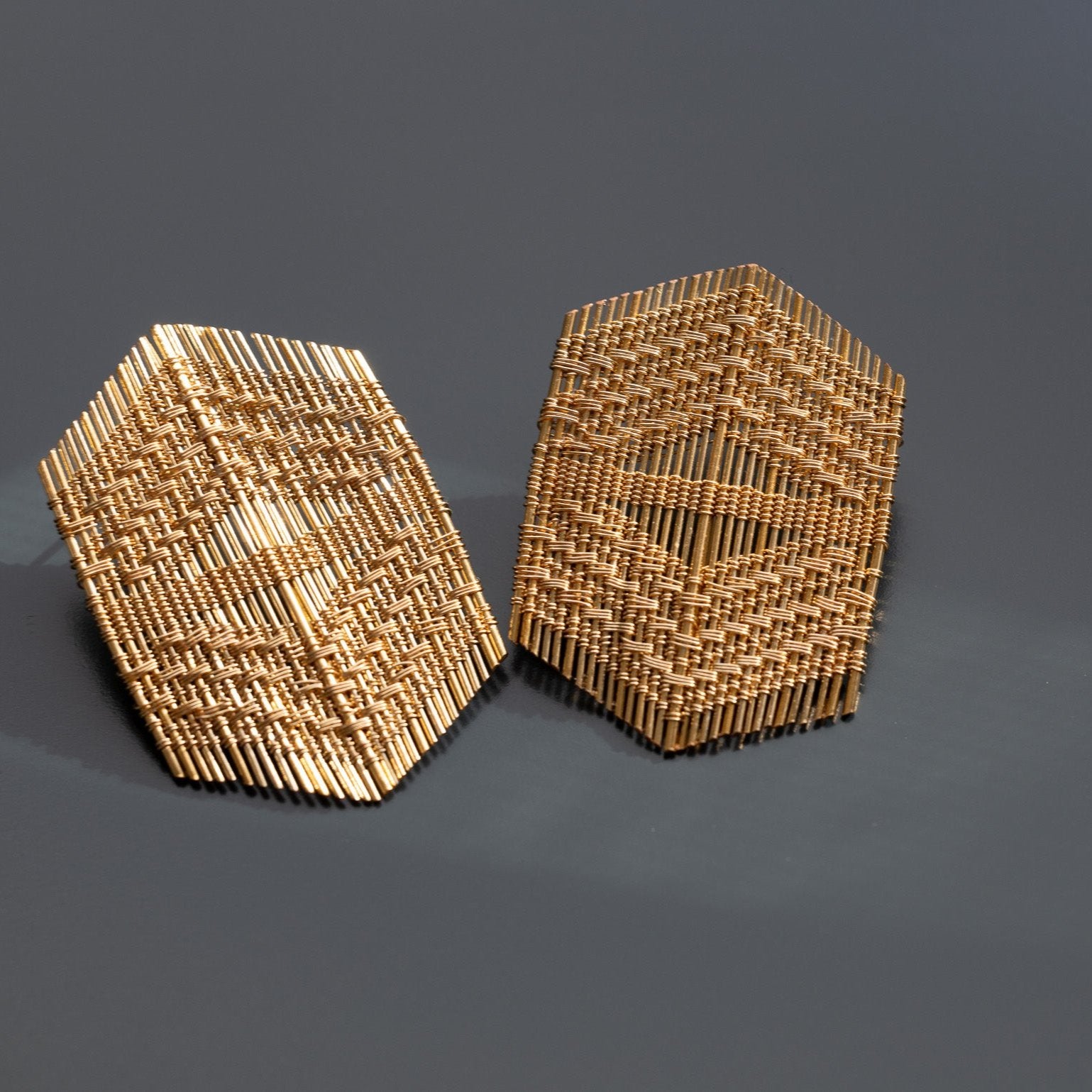 These one-of-a-kind earrings showcase the artistry of intricate wire wrapping techniques, putting them in a unique category of jewelry that requires no soldering or casting. This eco-friendly approach results in a lightweight design that’s as comfortable as it is striking. Crafted with high-quality gold-plated wire, skilled artisans weave a bold geometric pattern that adds a modern edge. The earring posts are also made from the same gold-plated wire, ensuring a seamless, cohesive finish. Adds sparkle and worldly elegance, from evening gown to ripped jeans.