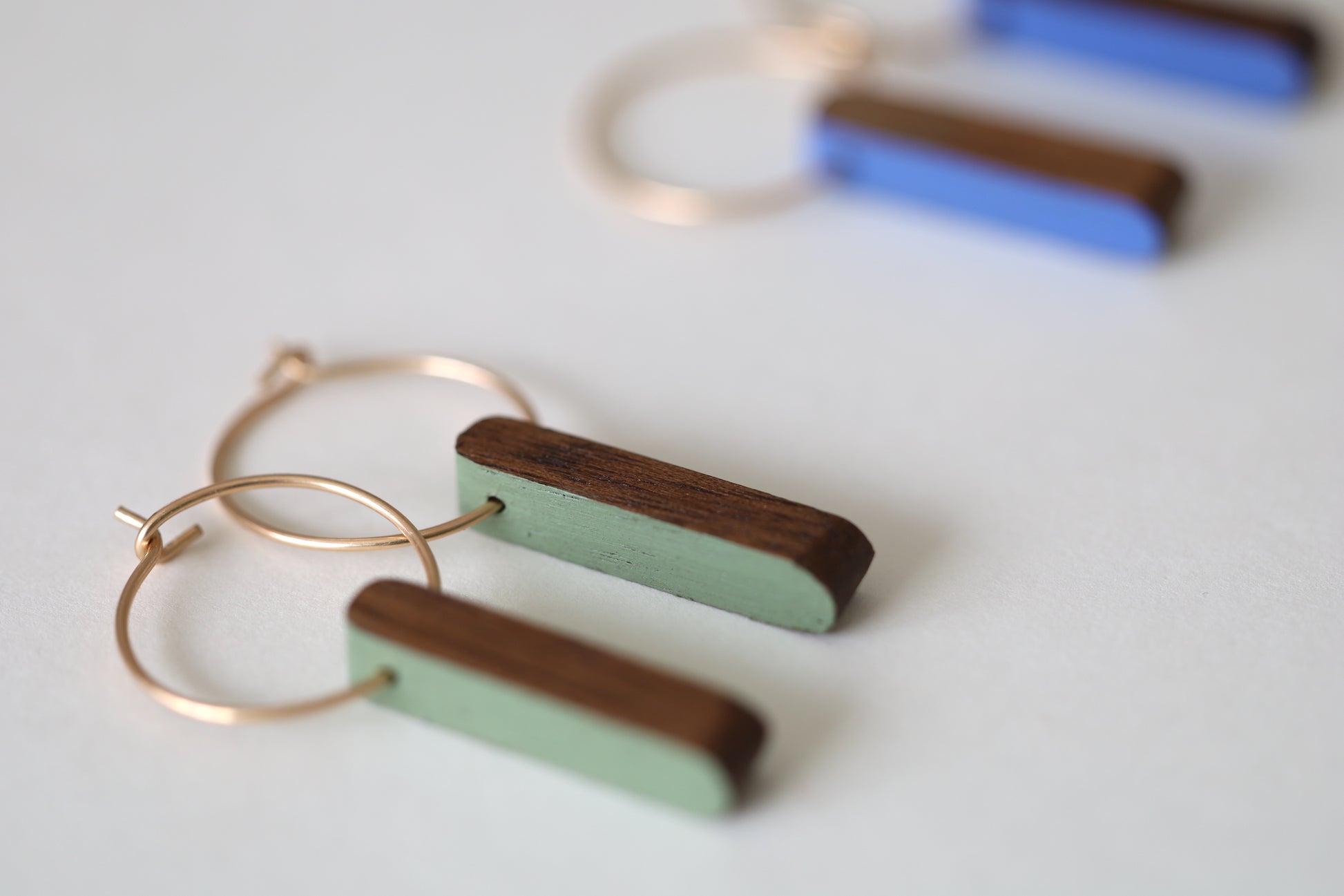 Tag… you’re it! The Tag Hoop earrings are adorned with handcrafted wooden tags suspended from bronze hoops, offering a playful yet subtle accessory that is lightweight and lively. Choose from Sage or Periwinkle.