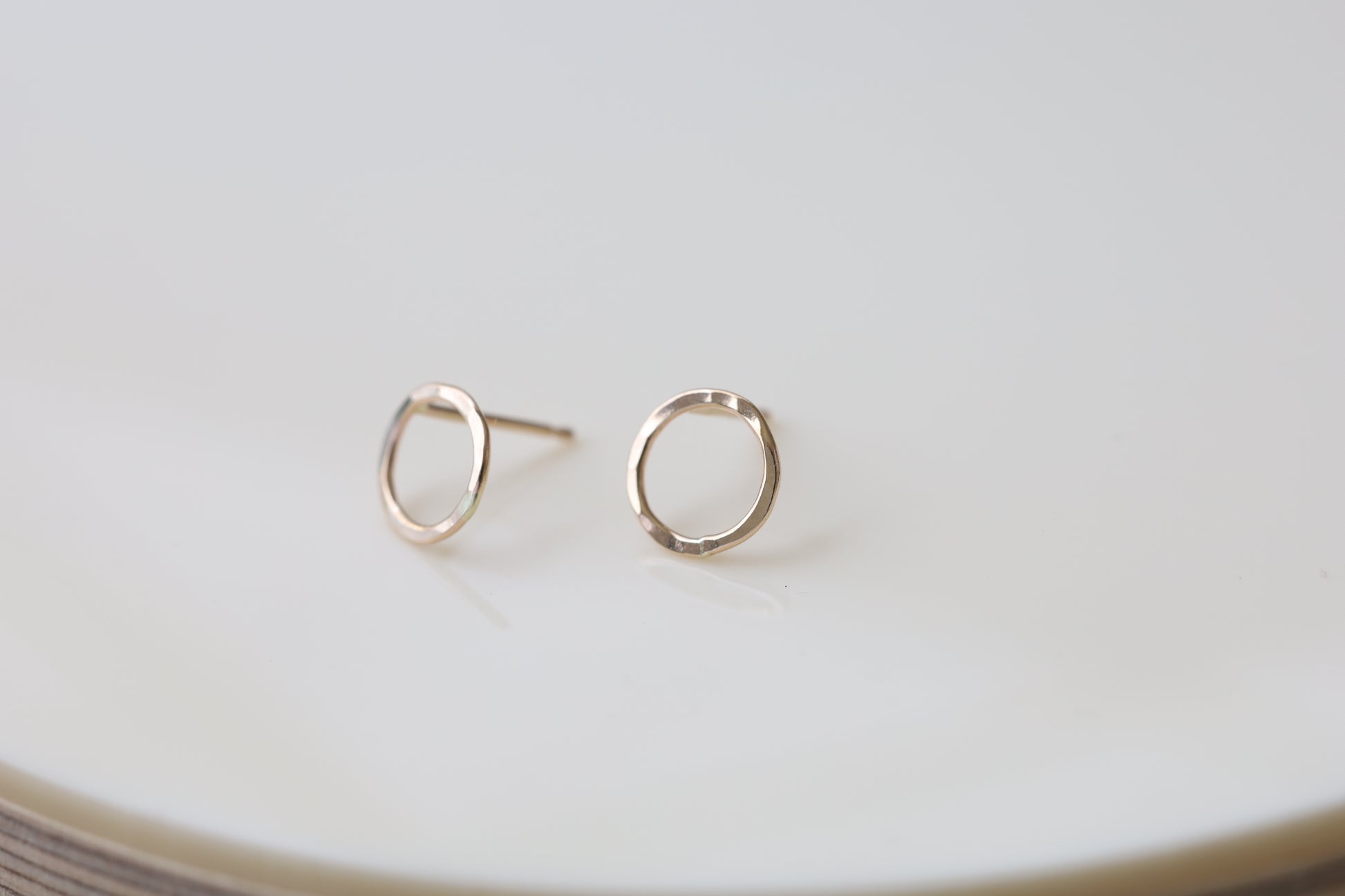 Subtle and perfect. Teeny tiny circle post earrings, hammered by hand for texture and extra shine. Perfect to wear alone or paired with other styles for double pierced ears.