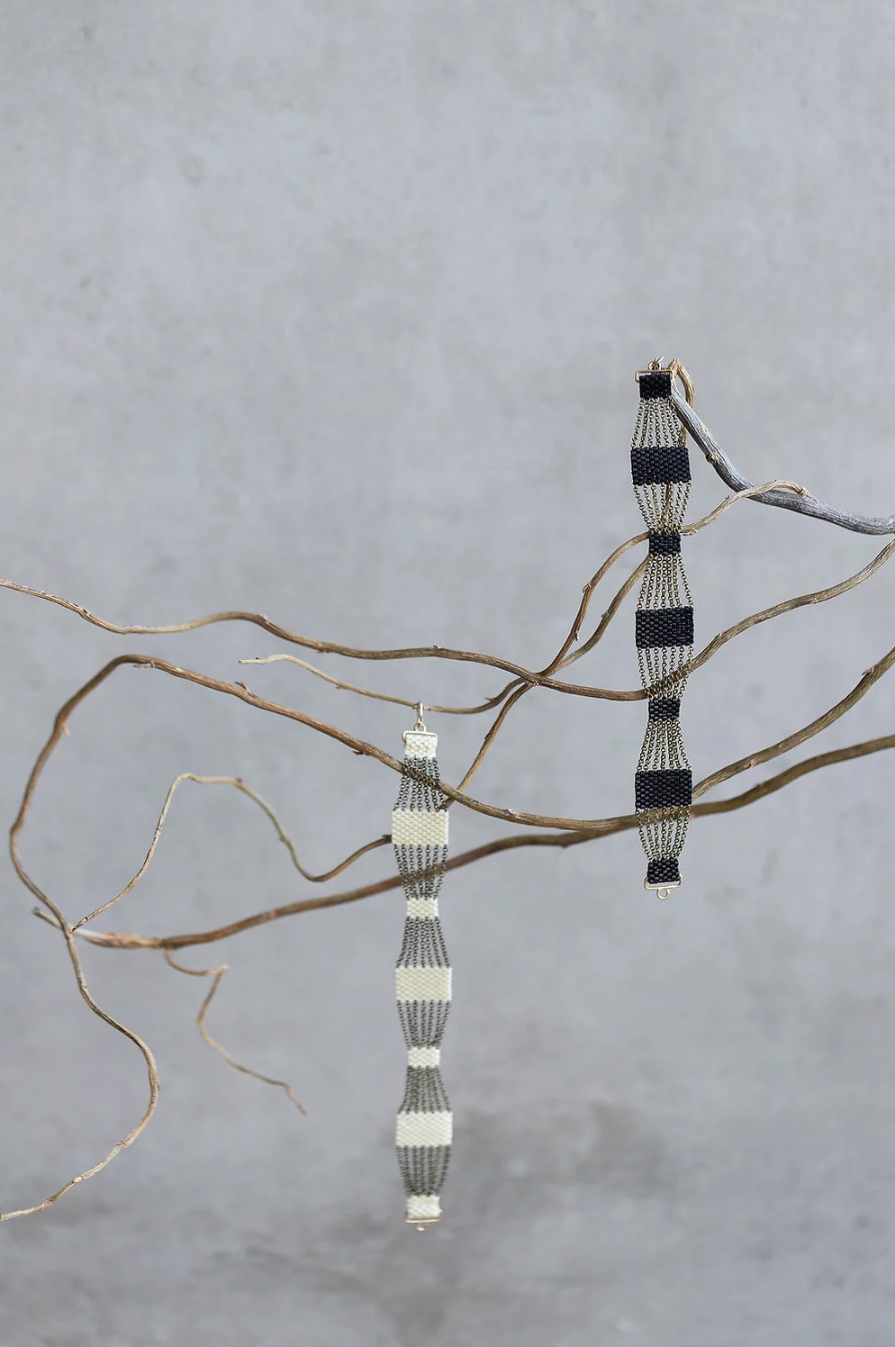 Portland, Oregon based, Wenjing Yang, has a passion for creating beautiful things. Informed by her background in fine art and fashion design, Yang creates intricate and elegant pieces utilizing Japanese Delica beads, brass chains, and semi-precious stones. Nature, sculpture, fiber arts, painting, architecture and photography, along with the wonder of craft, are her inspirations.