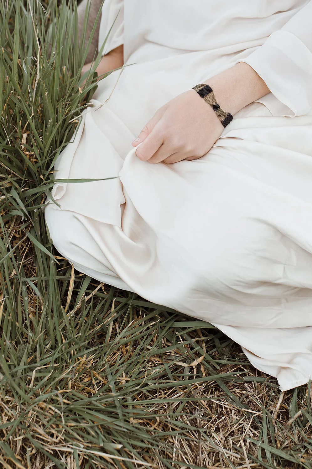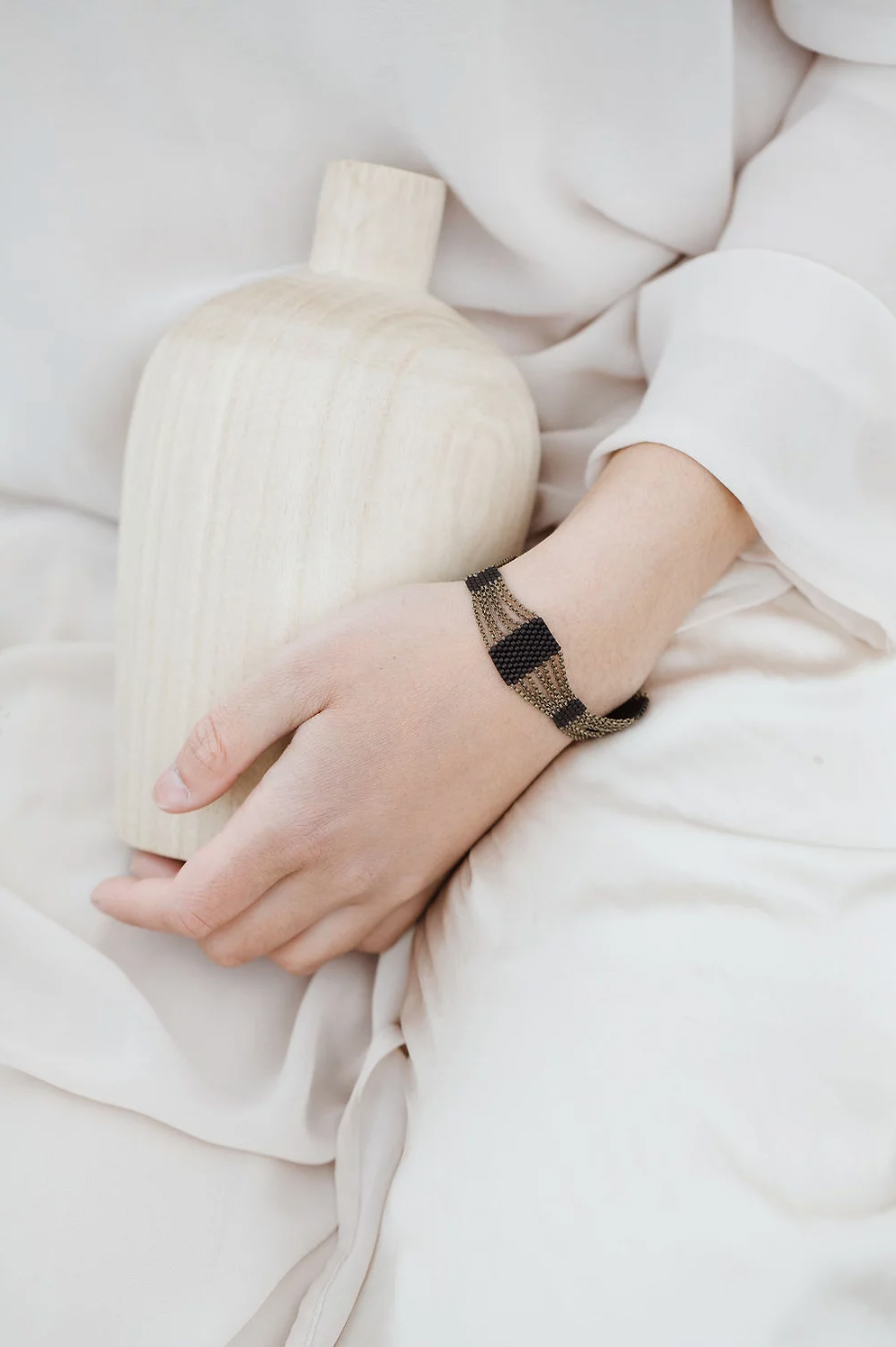 Flowy and graceful. The Wave bracelet is made with hand beaded matte Japanese Miyuki glass beads, connected by antique brass chains, finished with hand made brass clasp and extension. Adds a touch of elegance to dressed up looks.
